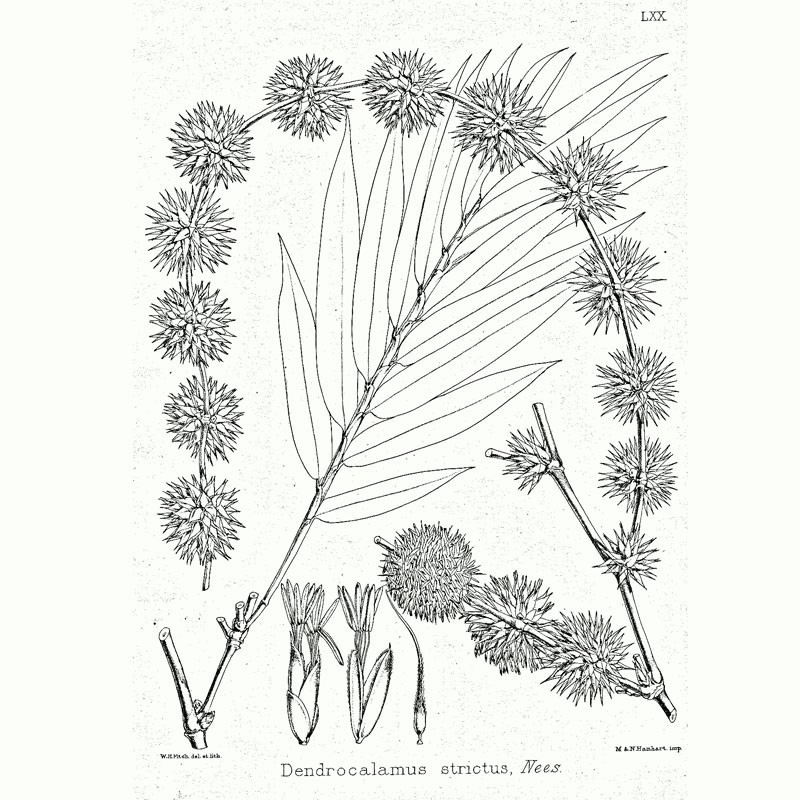 Il Bamboo Gigante (Dendrocalamus Strictus) è una varietà non infestante di Bambù conosciuto con vari nomi tra cui Bambù Gigante, Bamboo Maschio, Bambù Solido o Bamboo di Calcutta. Il suo legno viene principalmente impiegato nella produzione di carta. Raggiunge i 15 metri di altezza. Resistente alla siccità, ha una fioritura particolarmente misteriosa che a tutt'oggi interessa diversi studiosi di botanica e appassionati. Il Bambù Gigante fiorisce infatti contemporaneamente in tutto il mondo e produce semi solo una volta nel suo ciclo vitale.